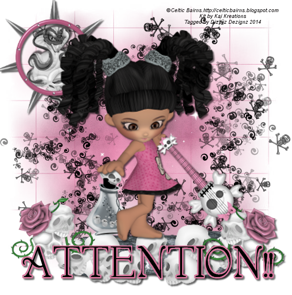 CT Tags for Kai Kreations using this adorable PTU/PU kit Emolicious matching a tube from Celtic Bairns. Emolicious is strutting her stuff in skulls, a guitar, lipstick, and hearts. You can purchase Emolicious at these stores along with Kai's other kits. ( tube not included )